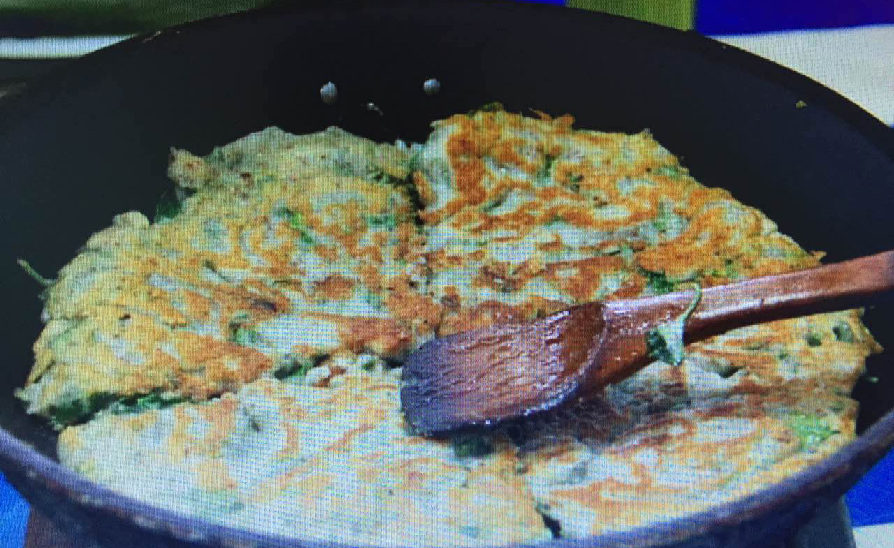 將米研磨成漿,加入花生及九層塔,以熱油煎成 薄餅,花生的香氣與九層塔的美味相結合,令人垂涎。